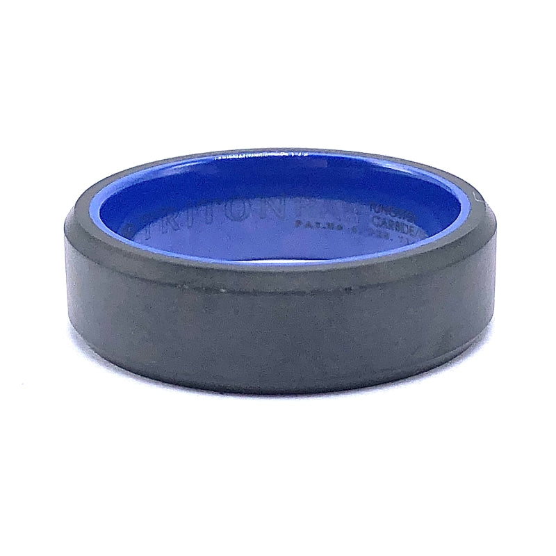 Triton Raw Mens Wedding Band, Black Beveled W/ Blue Inside, Tungsten Carbide