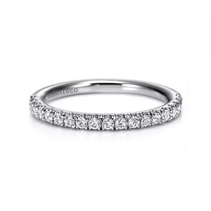French Pave Diamond Wedding Band, 11-.48Ctw Round Diamonds In 14K White Gold