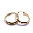 Italian Gold Hoop Earrings with scalloped edges in 14k yellow gold.