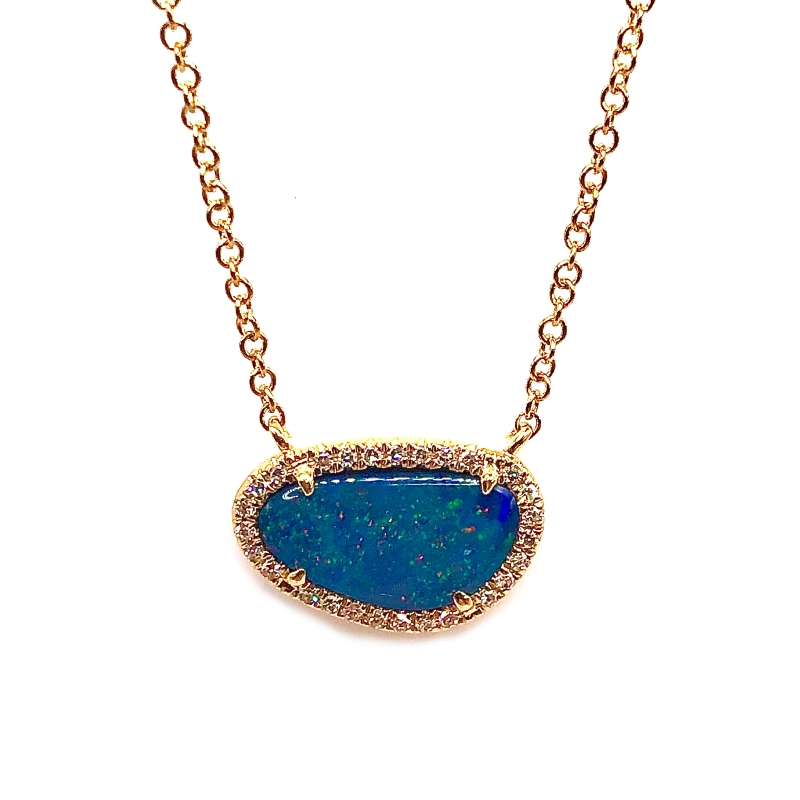 Opal & Diamond Necklace, 1.09Ct Opal, .07Ctw Diamond Halo, 16", 14K Yellow Gold