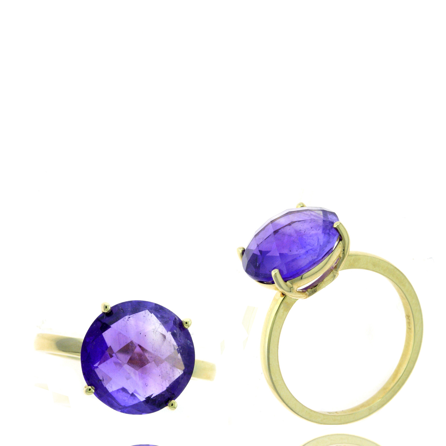 Amethyst Round Solitaire Ring 6.50 ctw 14K Yellow Gold